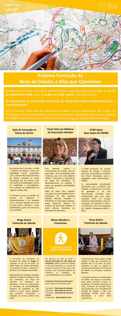 Esta ação de formação, pela qualidade dos intervenientes, Rodrigo Ramos, Presidente do Instituto Nacional para a Reabilitação – INR, Pedro Ribeiro da Silva, Coordenador da Rede de Cidades e Vilas que Caminham, Paula Teles, Presidente do Instituto de Cidades e Vilas com Mobilidade e Jesus Fole de Navia, Arquiteto assessor para a mobilidade da Deputacion de Pontevedra (2015-2023), continuará o ciclo formativo de melhoria dos conhecimentos e ampliação das competências dos técnicos presentes.